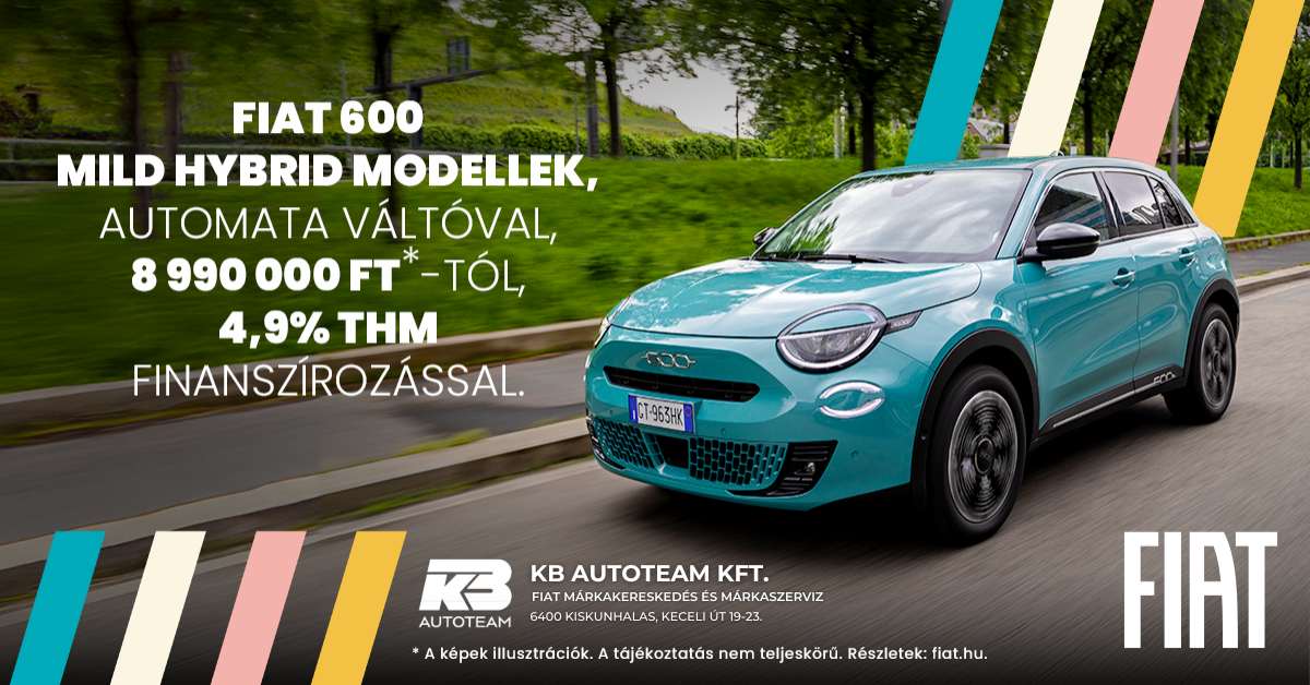 Fiat mild hybrid modellek már 8 990 000 Ft-tól, 4,9% THM finanszírozással