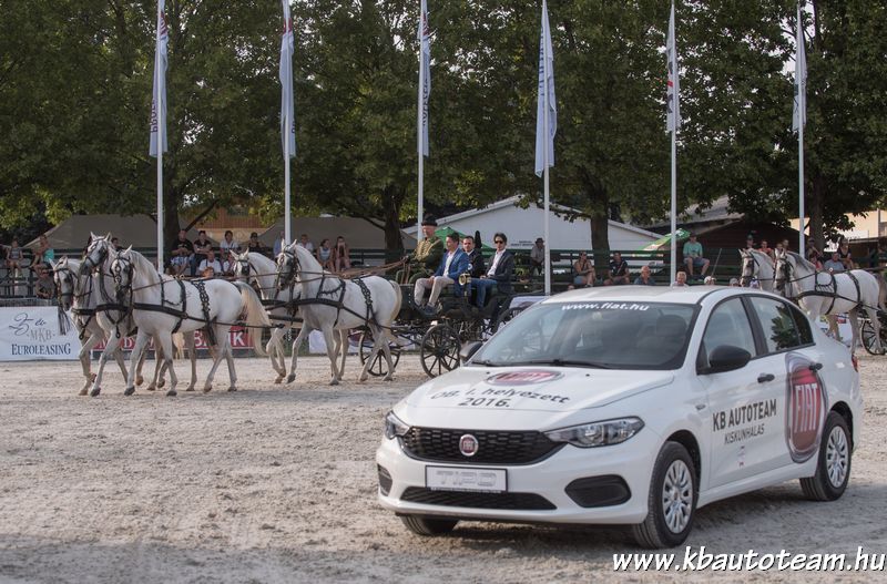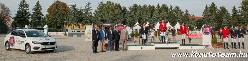 A győzelmi trófeát és a vadonatúj Fiat Tipo személygépkocsit Rémi Gábor, az FCA Central and Eastern Europe Kft. kereskedelmi igazgatója adta át, Juhász Tibor, a KB Autoteam Kft. ügyvezetője, egyben a zsűri elnöke kíséretében ifj. Szabó Gábornak. A felnőtteknél két halasi lovas is indult a 20 fős döntő mezőnyében. Mind ketten a középmezőnyben szerepeltek biztató, előrelépés lehetőségét sejtető lovaglással. Végül Füzér Gábor (Kiskunhalasi LTSE) Le Royal-lal dupla hibátlan lovaglással a 7. lett, Fodor Gábor (Equirria LK) Rádiháza-Echoval két akadályveréssel és egy kis időtúllépéssel a 10. lett a döntő napon.