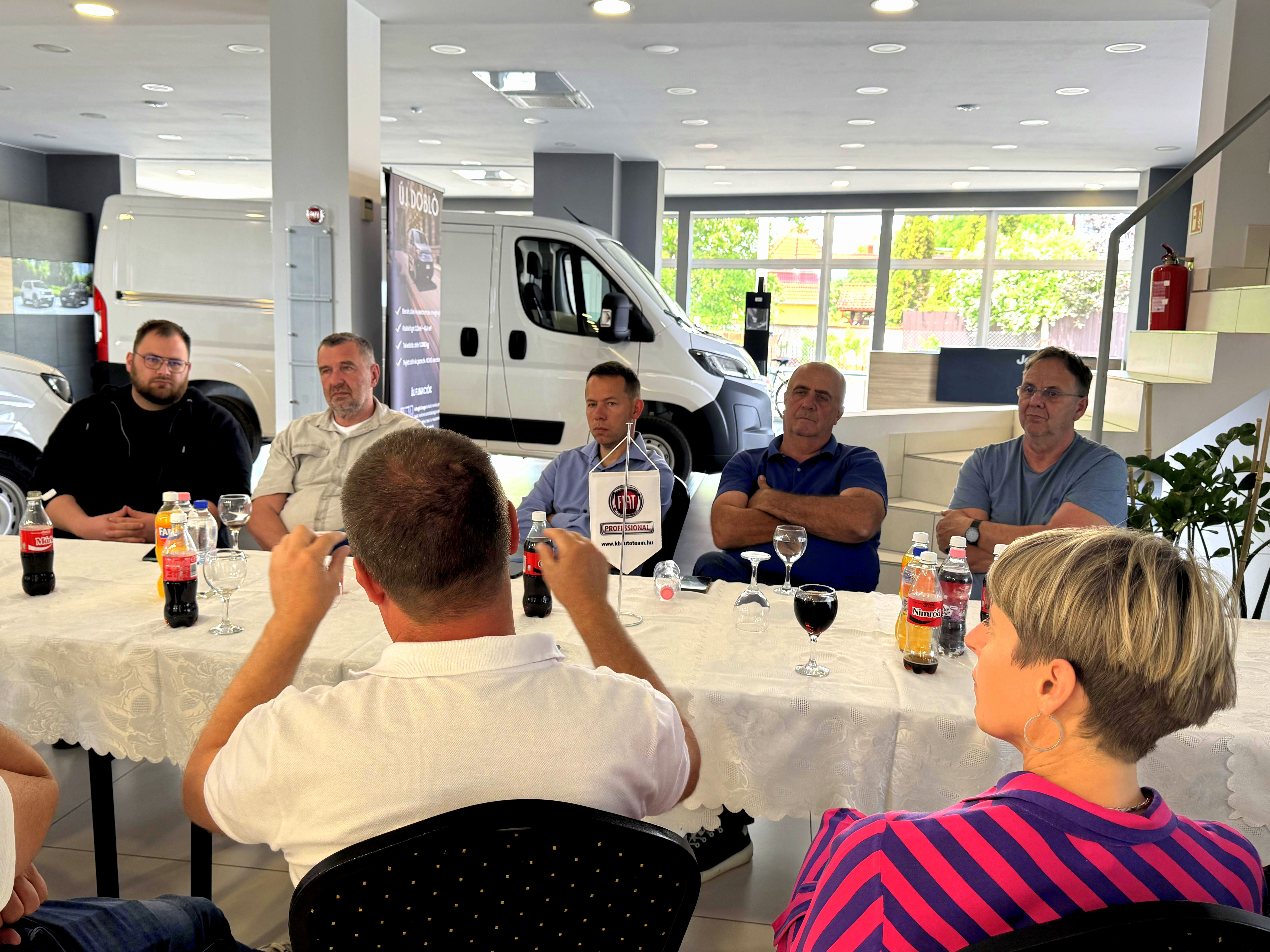 A délután folyamán egy kötetlen, mégis tartalmas kerekasztal-beszélgetés alakult ki, amely során alaposan átbeszéltük a Fiat Ducato legújabb fejlesztéseit. Vékony Melinda értékesítési vezető és Balaskó István szervizvezető részletesen ismertették a modell újdonságait és innovációit. Külön kitértek az új 2.2 MJET EVO motorra, a szervizelési tapasztalatokra és a garanciális tudnivalókra is. A beszélgetés során a partneri kapcsolatok szerepére és jövőbeni lehetőségeire is nagy hangsúlyt fektettünk.