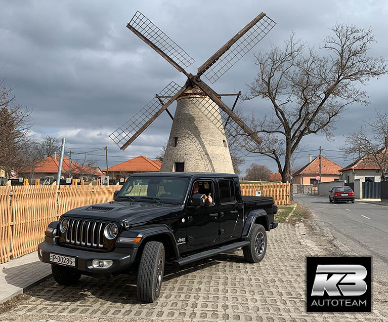 A Gladiator kidolgozott, munkára, harcra kész külseje, no meg a mérete tényleg bámulatos. A parkolásnál ugyan meg kellett nézni a helyet, hogy beférünk-e, de aki mellénk állt az tartotta a távolságot. A városról azonban térjünk rá a terepre. Elsősorban a Halas környéki homokbuckás, erdei utakon hagytuk érvényesülni a Gladiatort. Nem okozott csalódást, mi több, akár merre fordultunk, akármilyen laza homokra, vagy buckára kaptattunk, a Jeepünk ment, mint a meszes. Az autó minden körülmények között a biztonságot, az erőt sugározta. Kalocsa környékén a Duna part közeli sík, fekete földutakon is próbára tettük. Félelmetes, amilyen könnyedséggel száguldott a rázós talaj utakon. Katt ide a Jeep Gladiator Overland modell felszereltségéhez!