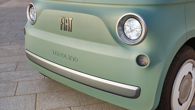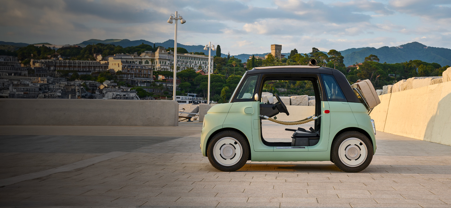 Az új, tisztán elektromos Fiat Topolino egy stílusos, városi mopedautó (quadricycle).